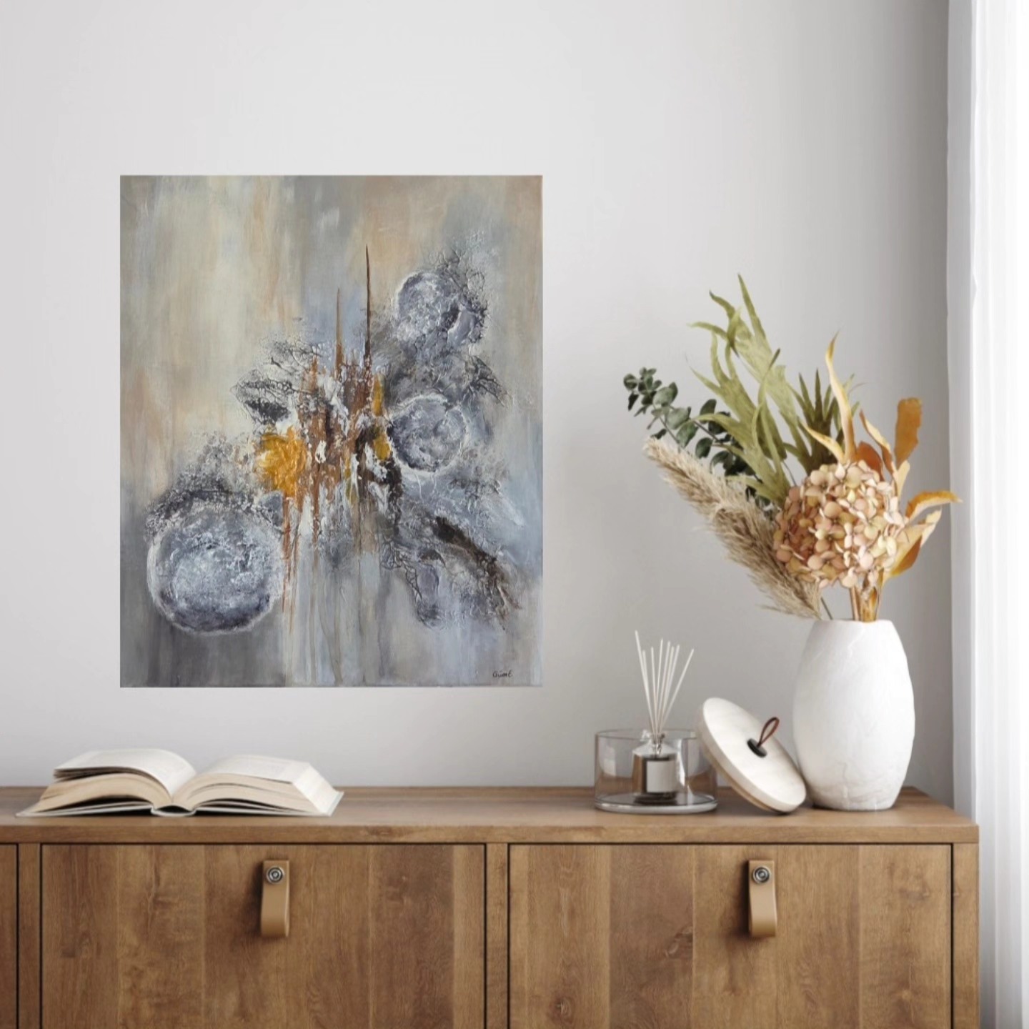 Akryl malt på lerret. Tynn kant.